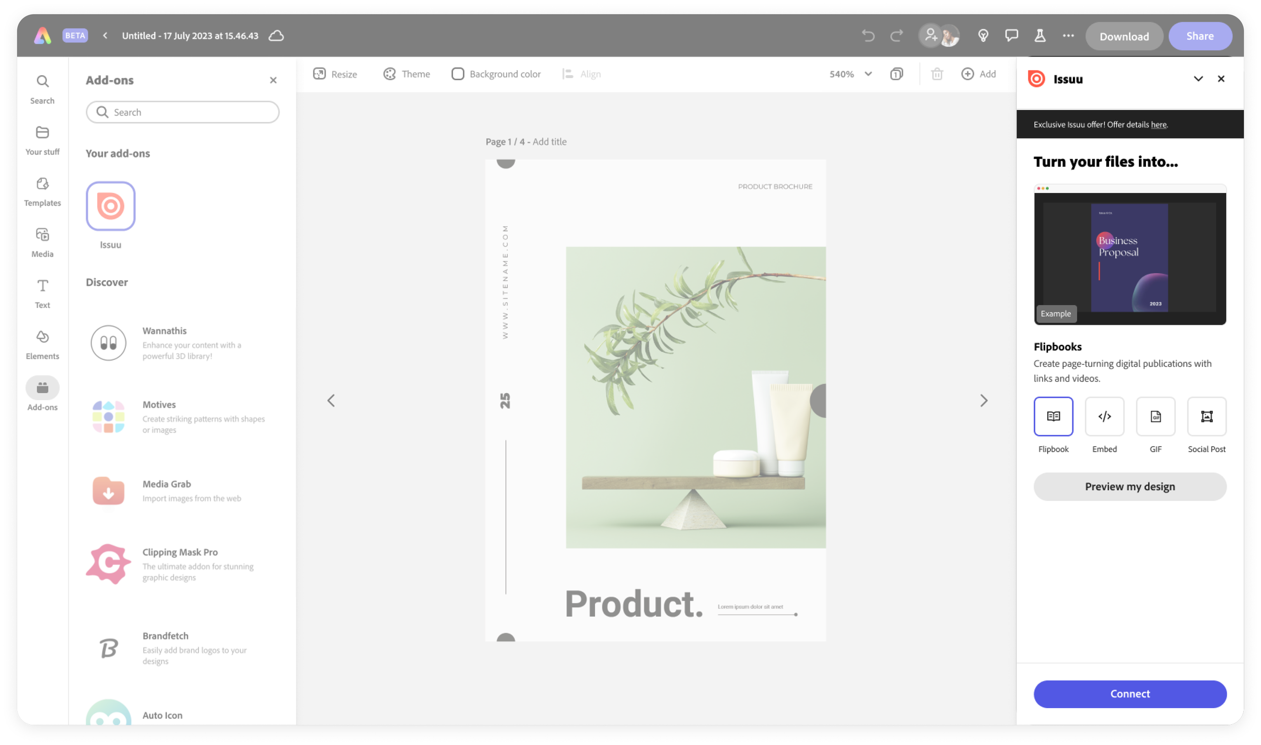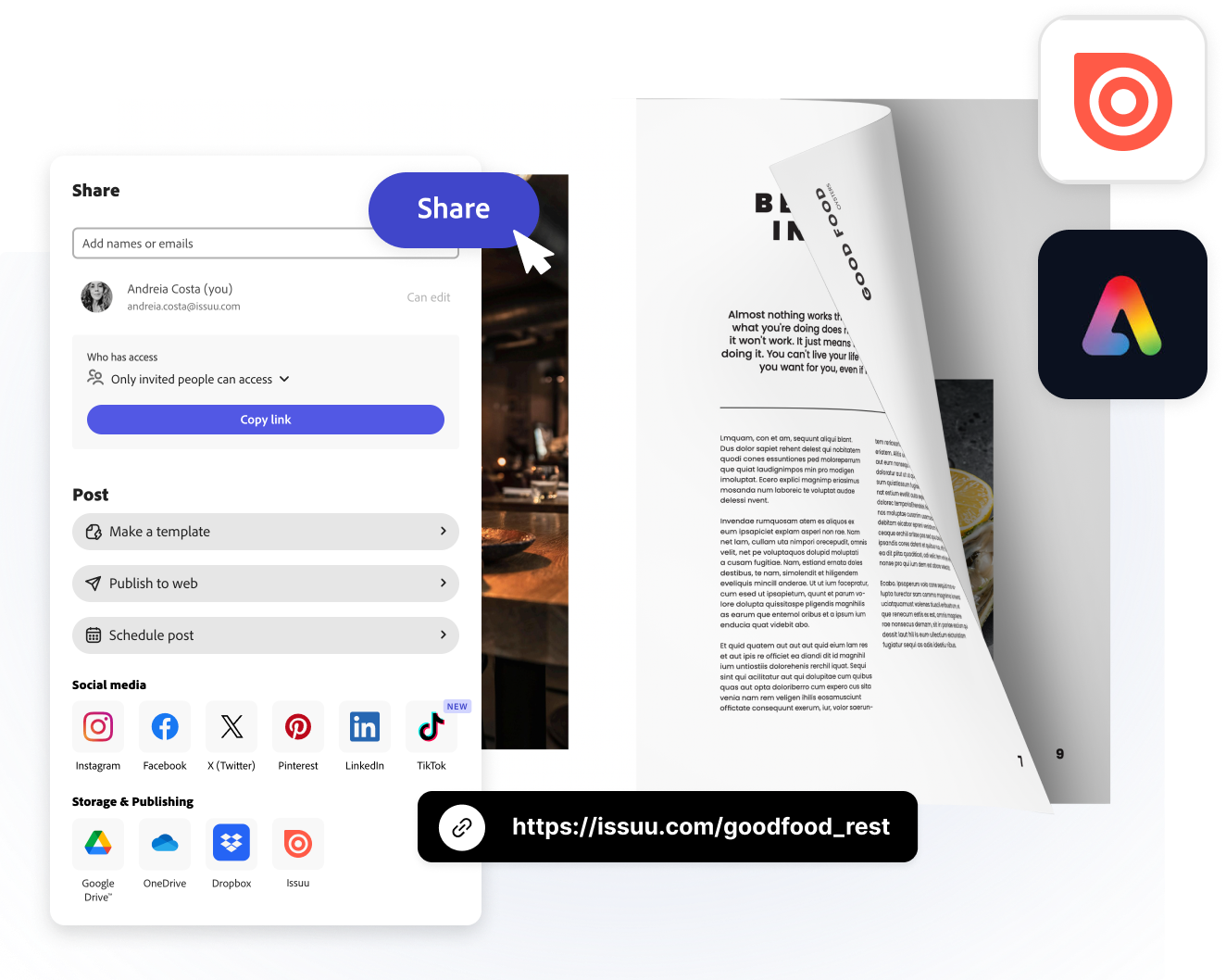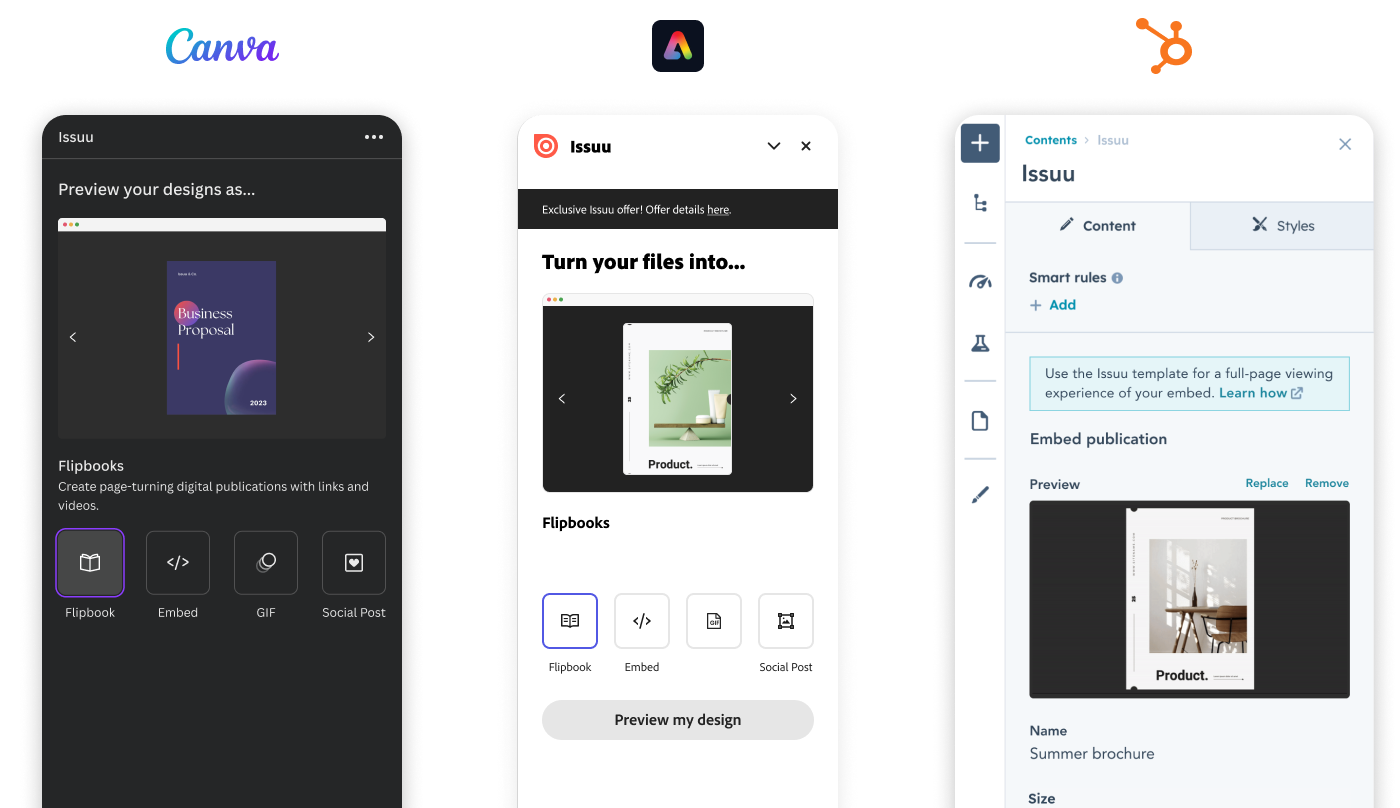 Both integrations allow users to transform static creative content into interactive Flipbooks without switching platforms, and provide access to Issuu’s integrated analytics, offering instant insights into metrics like impressions, reads, and clicks.